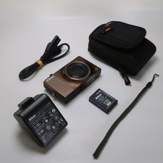 Nikon Coolpix S8000 14MP Digital Camera – Brown – 10x Zoom + Charger + Case